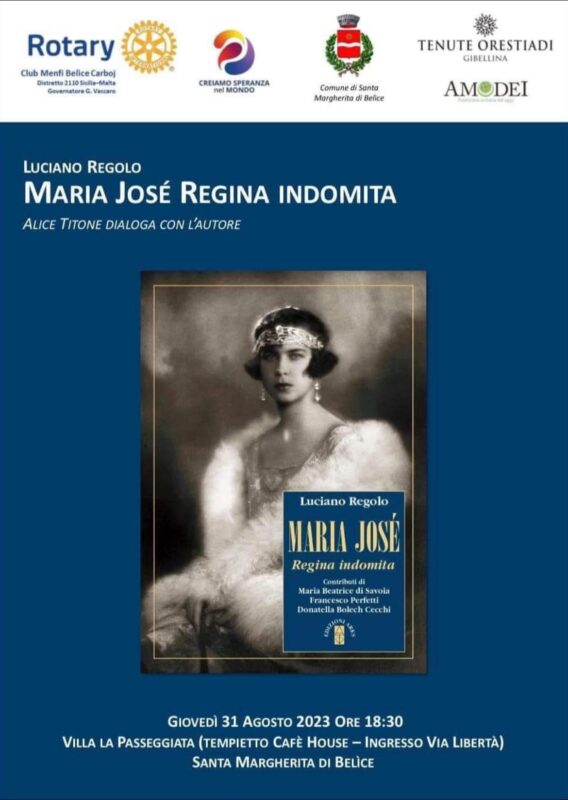 Giovedì 31 agosto alle ore 18:30 presso Villa La Passeggiata (Tempietto Cafè House - ingresso Via Libertà) di Santa Margherita di Belice si svolgerà la presentazione del libro “Maria José: Regina indomita” di Luciano Regolo.